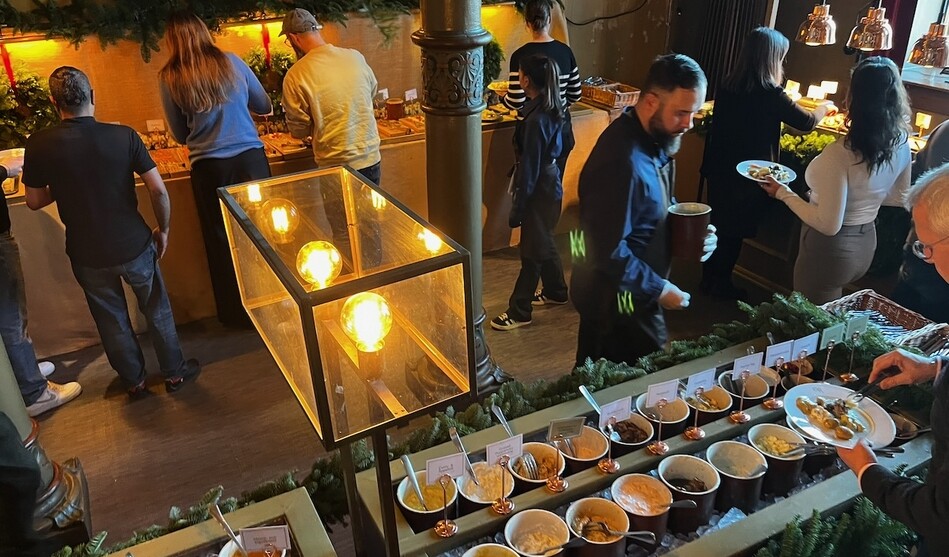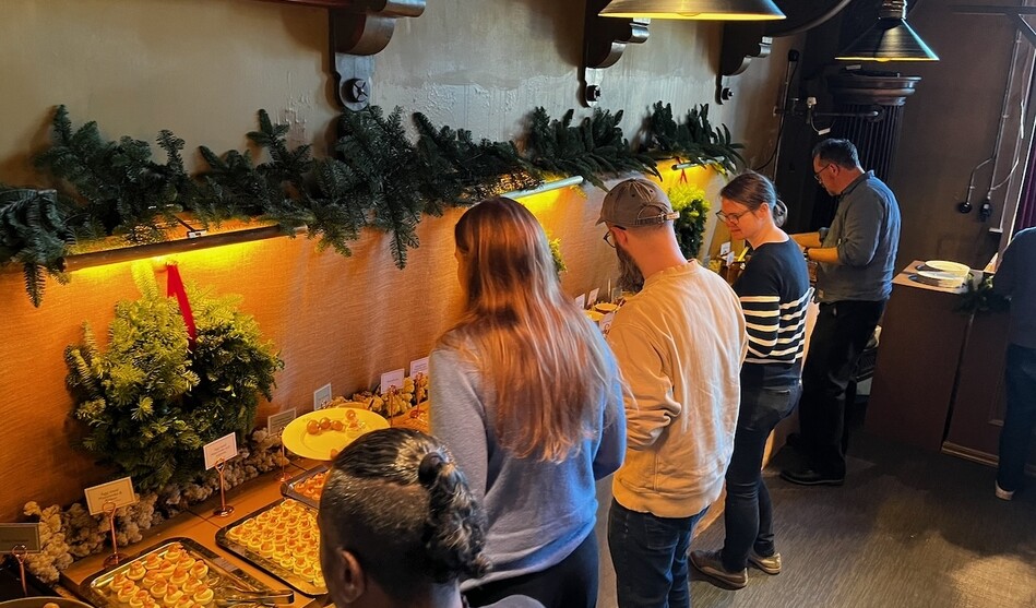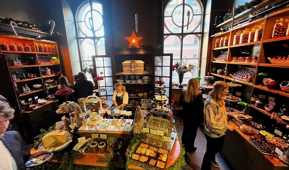 Julbordet serveras i klassiska etapper: sill och strömming, kallskuret, varm mat och ett av stadens mest generösa dessertbord. Allt presenteras med precision, elegans och en tydlig kärlek till traditionella svenska smaker. De hemlagade sillsorterna, de fina charkuterierna och den perfekt saftiga julskinkan är stående favoriter, men många återkommer framför allt för efterrätterna – ett dignande bord med praliner, ostar, bakverk och julgodis.