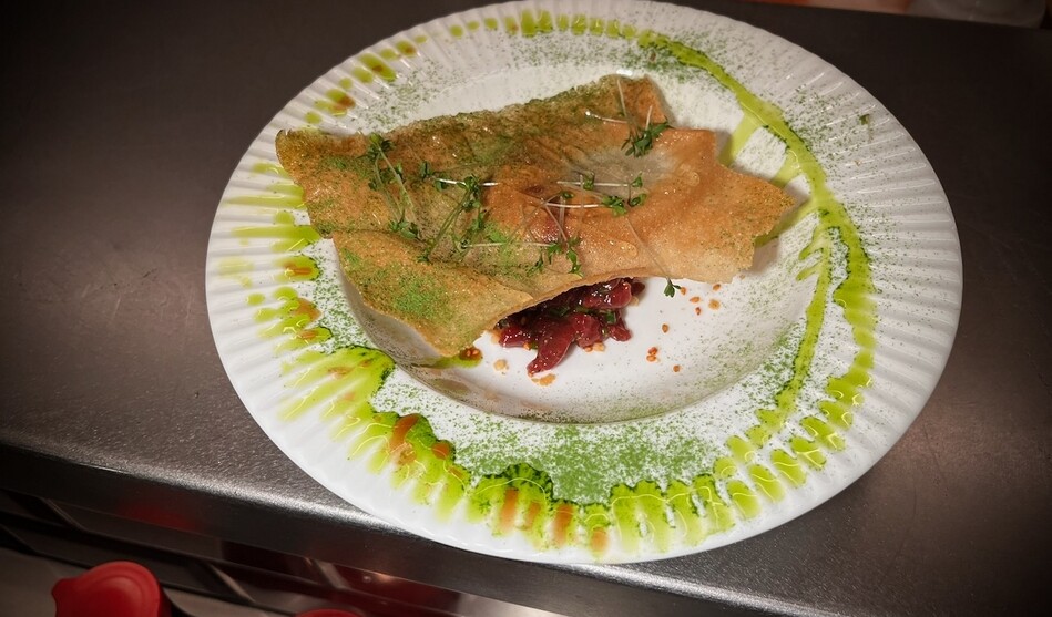 Typiska maträtter: Steak Tartare “Ponzu Dashi”. Brynt smör · kalvfond · feuilles de brick · ponzu. Tuna Tataki “Nori Sabayonne Foam. Shiitake teriyaki · nori furikake · kålrabbi. Nordic Char Plancha “Amarillo Smörsås”. Surf & Turf “Linea 420”. Oxinnanlår · smörpocherade räkor · rocoto · kimchi-furikake.