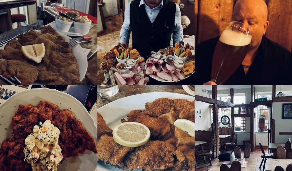 Typiska maträtter: Wienerschnitzel, Gulasch, Fläsklägg med surkål, ostpanerad schnitzel, Apfelstrudel.
