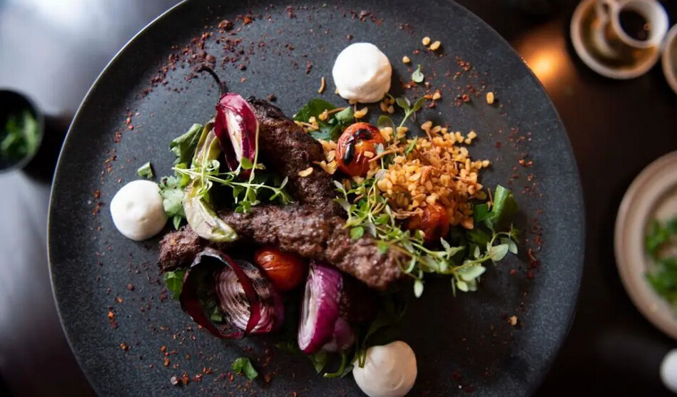 Tabbouli eller tabbouleh är en frisk sallad från Mellanöstern gjord på persilja, lök, tomater, bulgur och citron. Den serveras förstås på restaurangen som bär dess namn, tillsammans med alla andra smårätter man kan förvänta sig på en mezekrog som är stilenligt inredd med mjuka draperier, varmröda väggar, mönstrade soffor, gulddetaljer och en porlande fontän. Avsmakningsmenyn med 16 varma och kalla rätter kostar 315 kr, med grillmix 385 kr. Efter det är du garanterat mätt och nöjd.