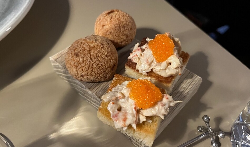 Typiska maträtter: Gaspazo med tomat-basilika sobre och halstrad havskräfta. Rökt torsk i strut med kallrökt regnbågsrom. Hummerravioli med hösttryffel. Grillad biff med choronsås, saltbakade jordärtskockor.