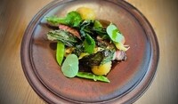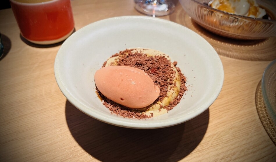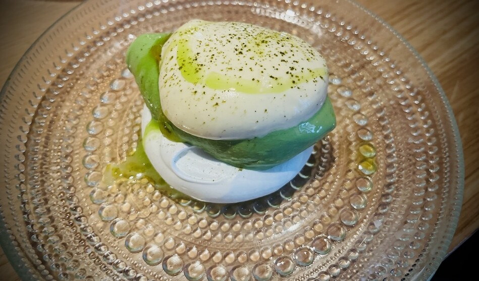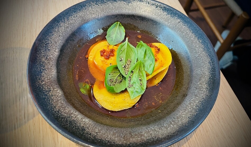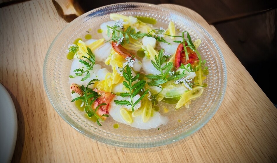 Typiska maträtter: Hälleflundra crudo med tomatvinaigrette, jordgubbssake, bondböna och kosho, Tartarsnitt på hängmörad ryggbiff med crème crue, rabarberkimchi och Wrångebäck, Bitter sallad på cikoria med pistage och surdegsgranola, Hallands Siren och aprikos, Vit sparris med getricotta, chilisylt och ramslöksolja, Agnolotti med parmesan, pecorino, kronärtskocka och gremolata.