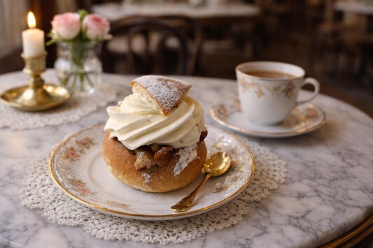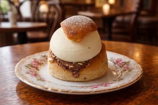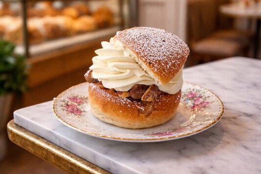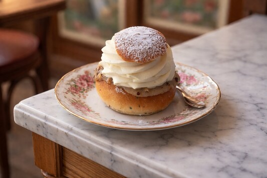Båda semlorna levererar det där ögonblicket när världen stannar i en tugga. Perfekt kardemumma, generös mandelmassa och grädde som känns mer skulpterad än spritsad — men uttrycken kunde knappast vara mer olika.