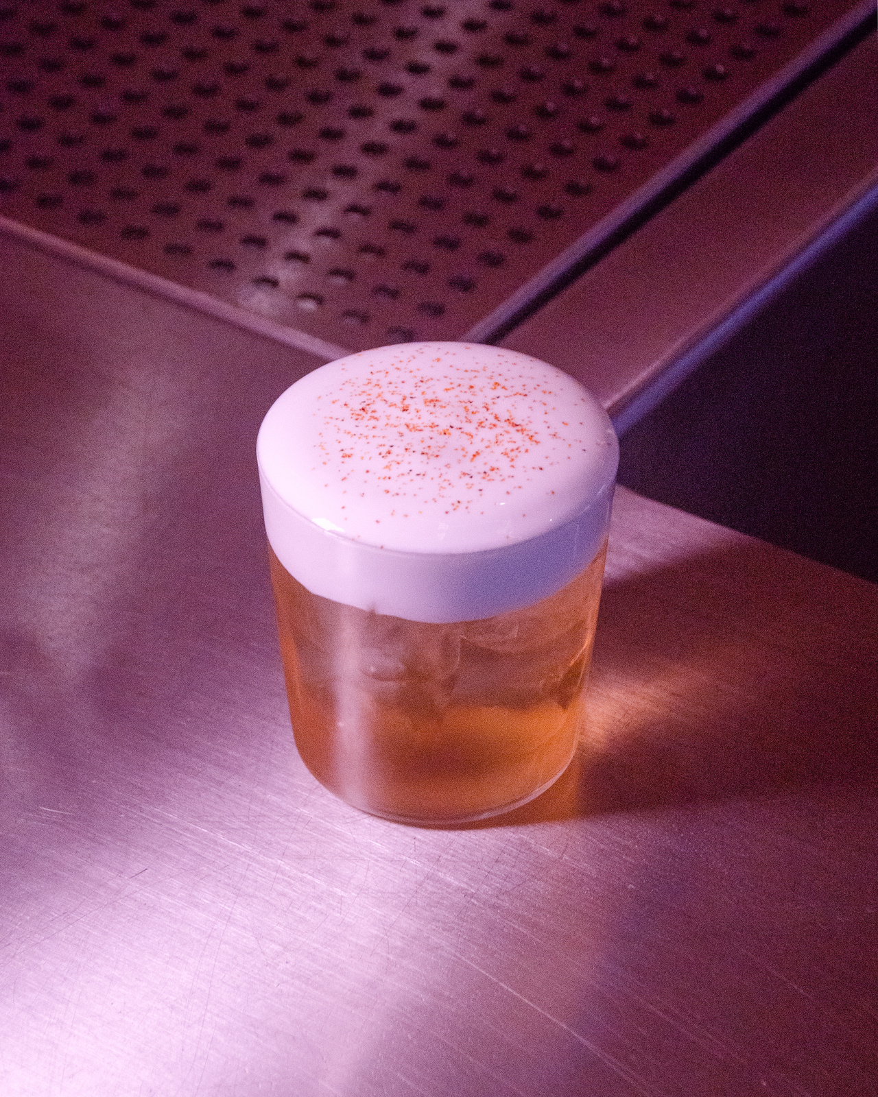 Peach & Beets: Casamigos Mezcal, rödbetersvermouth, ingefära, socker och syror samt persikobitters.