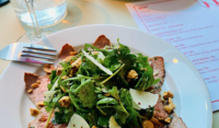 Typiska maträtter: Baked ricotta za’atar: honey, olive oil & bread. Chicken liver parfait: brioche toast, pistachios & rose pepper. Harira: spicy carrots, chickpeas, lentils, spinach, feta & salsa verde. Snsalada anchoa: