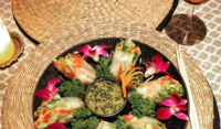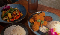 Typiska maträtter: Röd curry: kokosmjölk, thaigrönsaker, välj mellan kyckling/jätteräkor. Khow Pad: wokat ris med ägg, morötter, lök, tomat och kinesisk broccoli, välj mellan tofu/kyckling/biff/jätteräkor. Het Basilika: wok med basilika, paprika, bambu, zucchini, haricot, lök, chili, välj mellan tofu/kyckling/biff/jätteräkor. Laab: