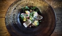 toppmurkla, ramslök, spetskål, svartkål, kålrabbi, parmesan. Eldad röding palsternacka, chili, hasselnötter, zucchini, brynt smör, soja-glaze.