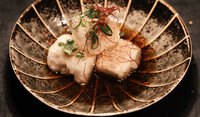 Typiska maträtter: Tebasaki. Chicken wing, Shichimi, lemon 1pcs. Chicken Oyster. Chicken thigh, lemon. Hatsu. Chicken heart, sea salt, garlic oil. Cornribs. Corn ribs, miso butter. Gyoza. Pork / Vegetarian. Shumai. Japanese-style pork shumai 5pc. Karaage. Deep fried chicken, garlic mayo. Achilles. Chicken lower thigh, garlic butter, thyme. Tonkotsu. Pork paitan, chashu, scallion, menma, egg and nori. Spicy miso. Pork paitan with spicy miso, minced chili pork, scallion, sweet corn, egg and nori.