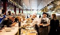 K-märkt ligger i en gigantisk 70-tals-skolmatsal-inspirerad lokal och serverar härlig buffé. Maten betalas efter vikt så det kan bli dyrt för dig som vill äta mycket. Bakom K-märkt står kocken Johan Gottberg, vinkyparen Jens Dolk och konditorn Daniel Roos. Här finns också patisseri, bageri och kaffebar samt en av Stockholms största festvåningar med kapacitet för 1000 gäster.