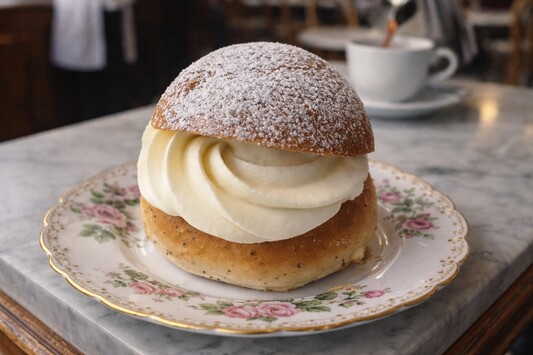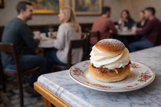 Båda semlorna levererar det där ögonblicket när världen stannar i en tugga. Perfekt kardemumma, generös mandelmassa och grädde som känns mer skulpterad än spritsad — men uttrycken kunde knappast vara mer olika.